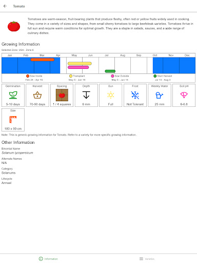 • Growing info for 70+ crop types and 1,000+ varieties