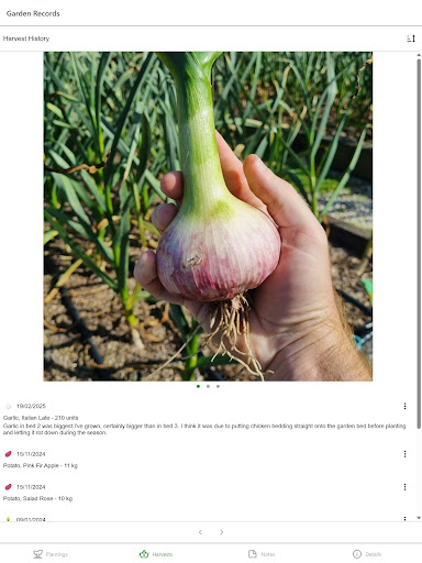 • Log harvests with weights and photos